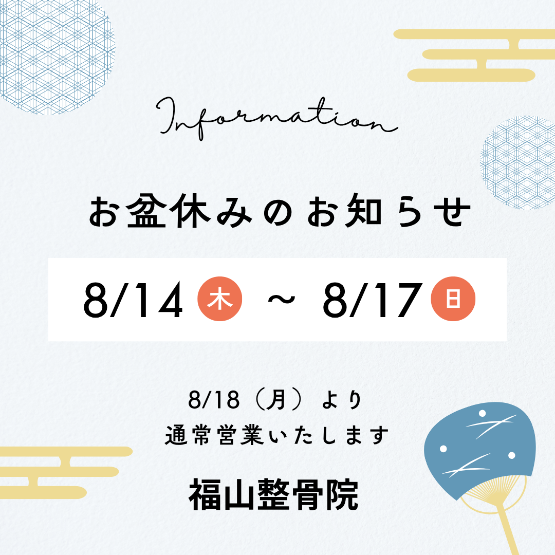 【お盆休みのご案内】ー交通事故なら福山整骨院へー