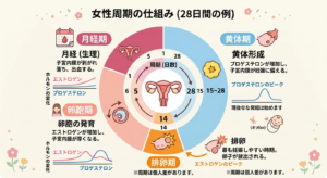 女性には生理周期があり、それに伴って「エストロゲン」というホルモンの分泌量が激しく変動します。このホルモン量が急激に減るタイミング(生理前や生理中)に、脳内の血管が拡張したり、痛みを感じる物質が放出されやすくなったりすることで、頭痛が引き起こされます。