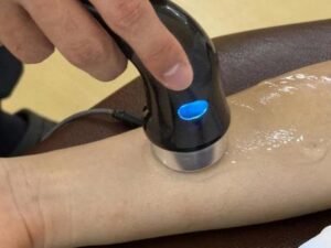 当院では、必要に応じて超音波を使用します。超音波を患部に当てることで、炎症をはやく